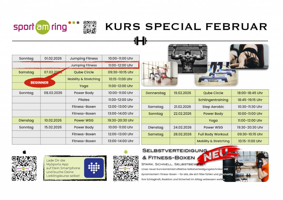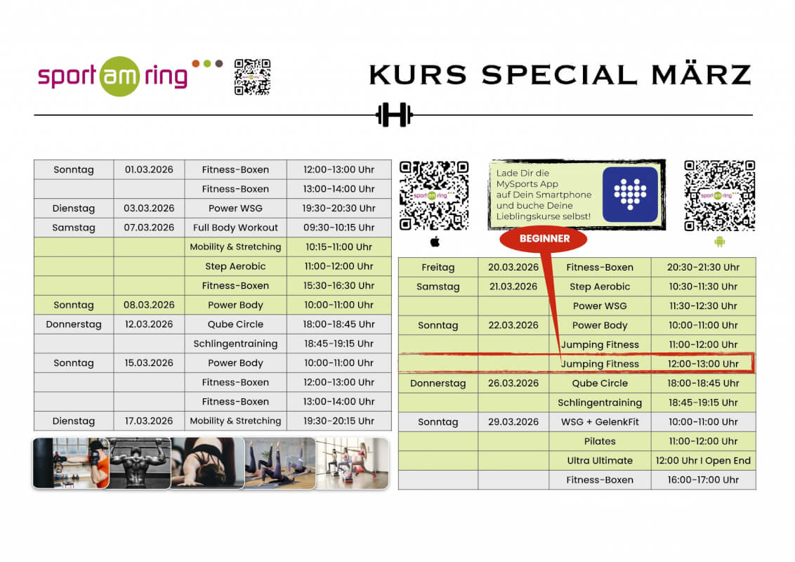 Das ist gar kein Problem. Bei Sport am Ring erhältst Du als Mitglied einen Trainingsplan, der auf Deinen individuellen Trainingszustand und Dein jeweiliges Trainingsziel abgestimmt ist. Diese bauen sukzessiv aufeinander auf.